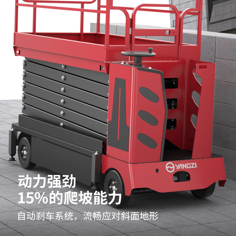 揚子站駕式升降平臺SJZ :全新安全設計,高強度材質,精工細節(jié),站駕控制,動力強勁,可拆卸護欄,用戶可自行控制車輛的移動、平臺的升降在高空獨自實現連續(xù)操作。