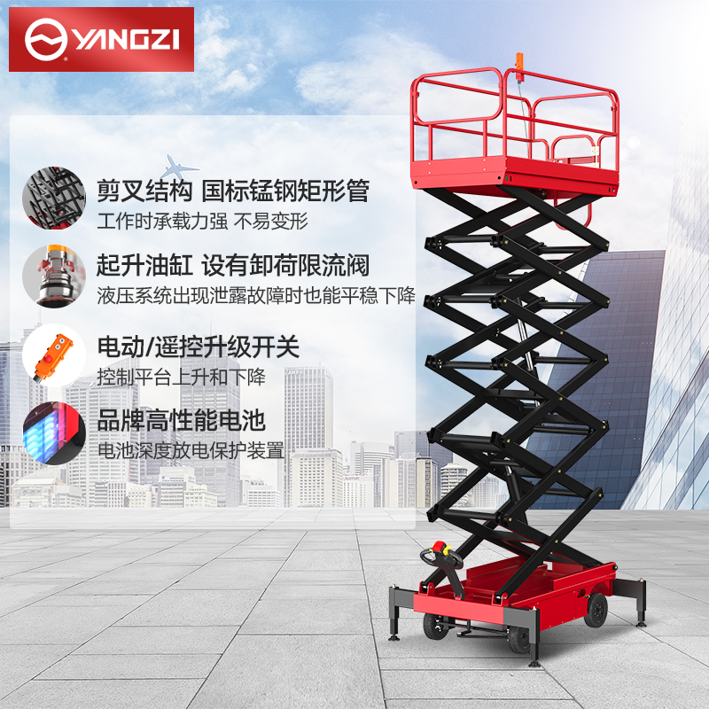 揚(yáng)子剪叉式電驅(qū)步行式平臺(tái)SJY:剪叉式電動(dòng)升降平臺(tái)穩(wěn)定性更好,高強(qiáng)度好品質(zhì)首選揚(yáng)子品牌